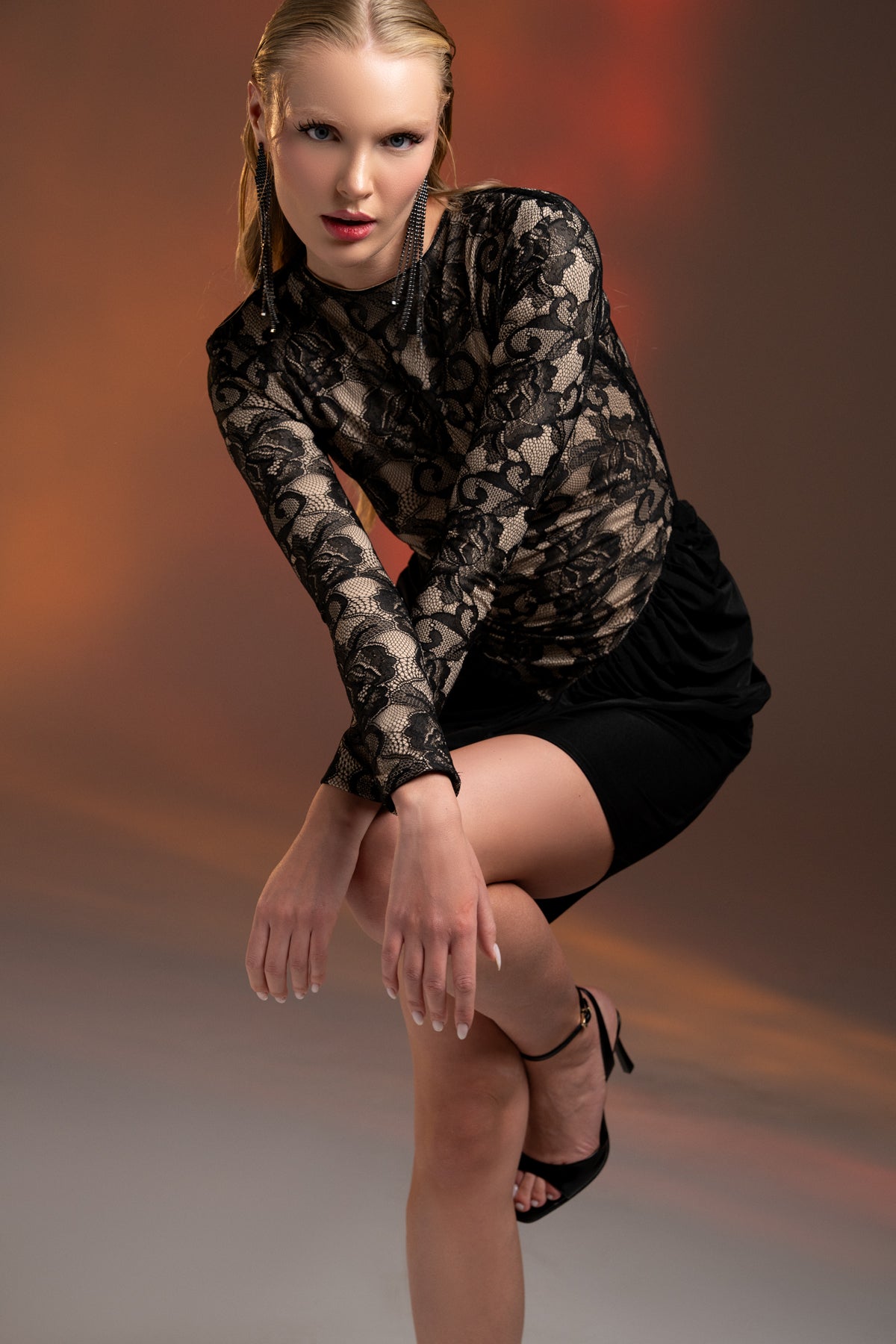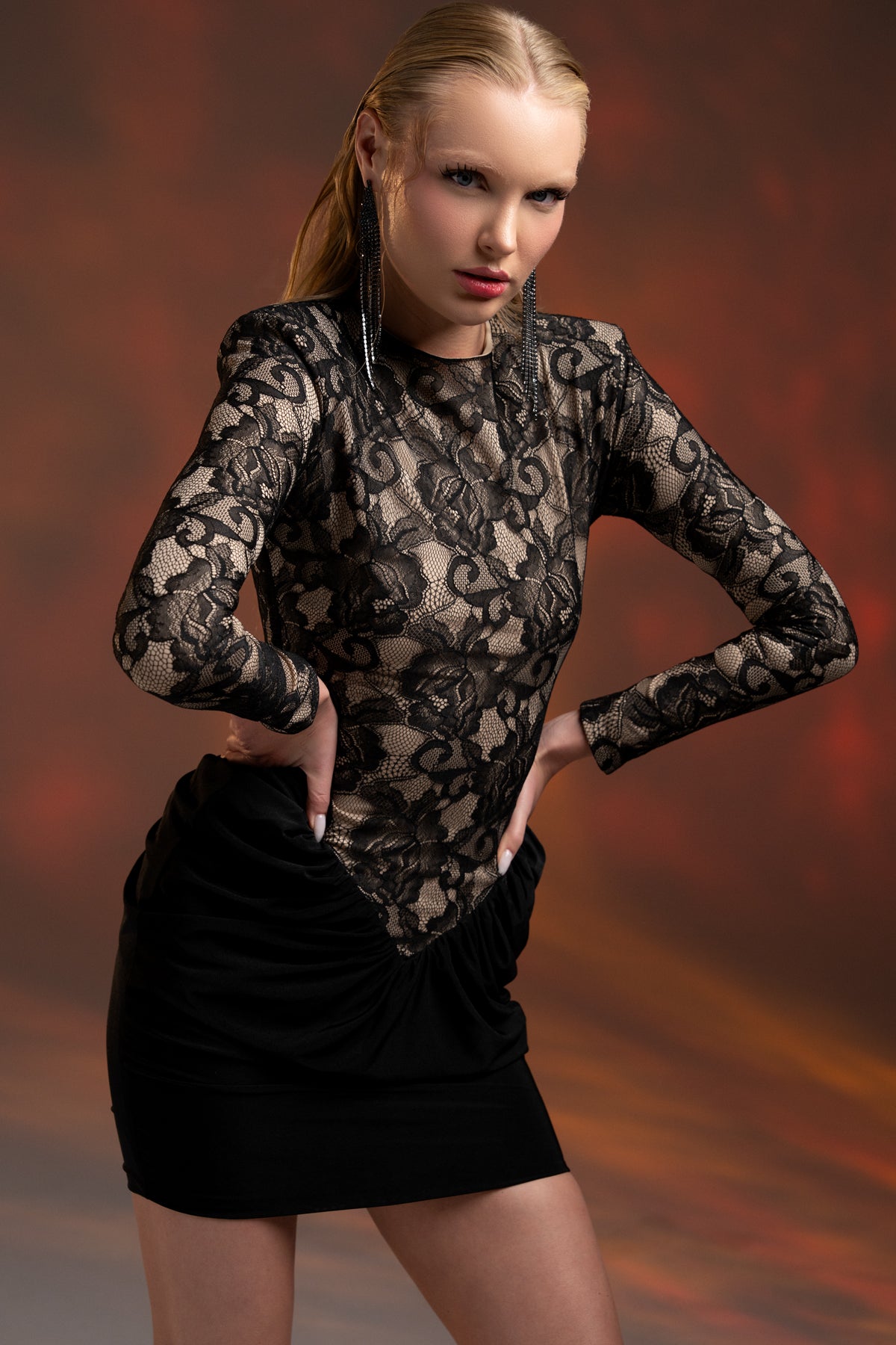 Gotik zarafeti ve feminen dokusuyla öne çıkan bu özel tasarım, şıklığını sade ama etkileyici bir şekilde ifade etmek isteyenler için hazırlandı. Siyah tonunun gücünü taşıyan dantel üst detayları, elbiseye sofistike bir hava katarken; mini kesimi ve ince askılı formu modern duruşu tamamlıyor.