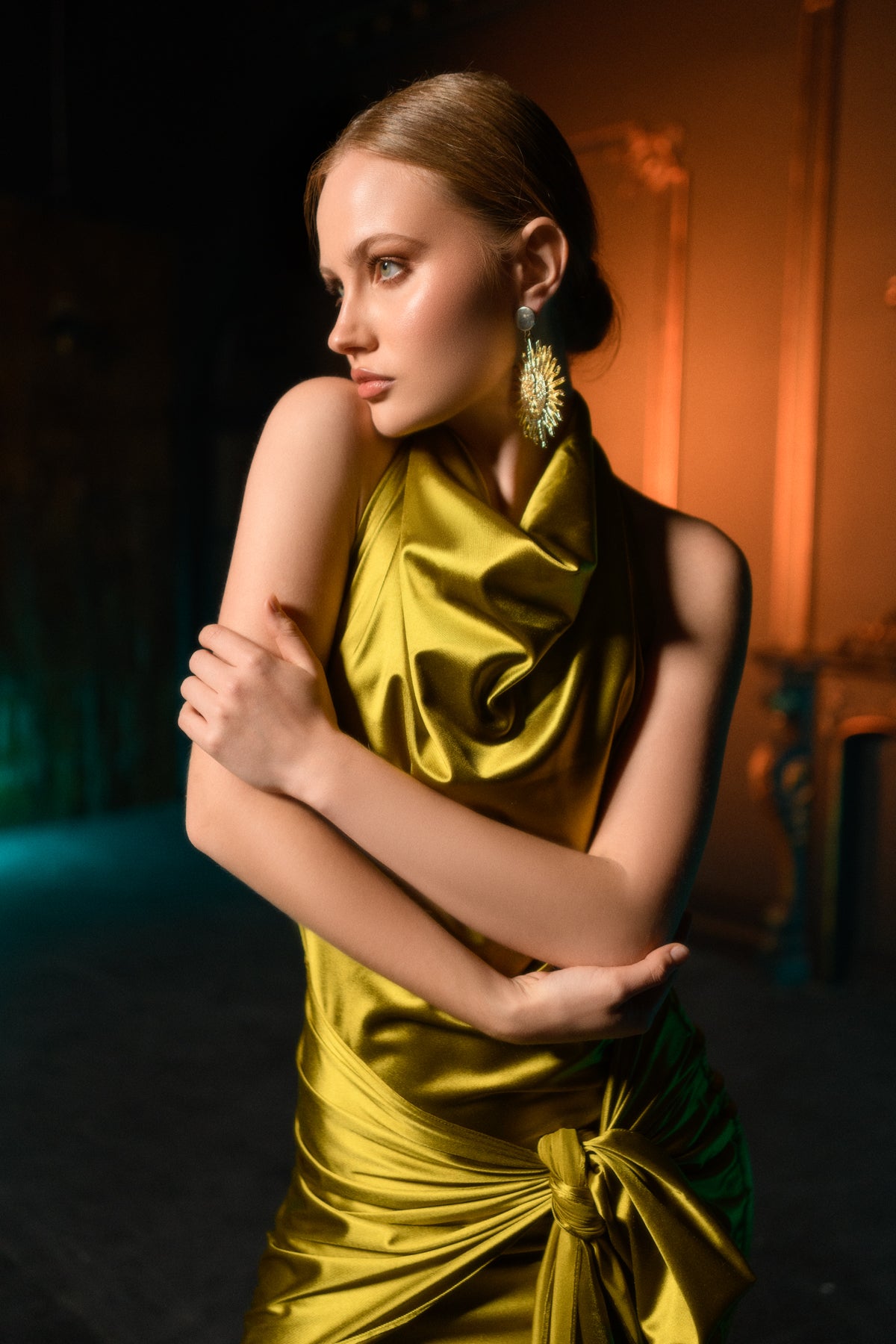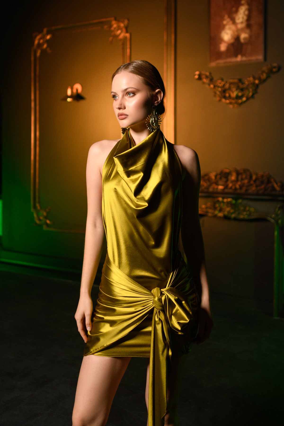 Zarafetin ve sofistikeliğin mükemmel birleşimi! Bu yağ yeşili saten mini elbise, zarif saten kumaşı ve şık bağlama detayıyla her ortamda şıklığınızı parlatacak. Satenin pürüzsüz dokusu, vücuda oturan formuyla birleşerek, feminen siluetinizin en güzel şekilde vurgulanmasını sağlar.